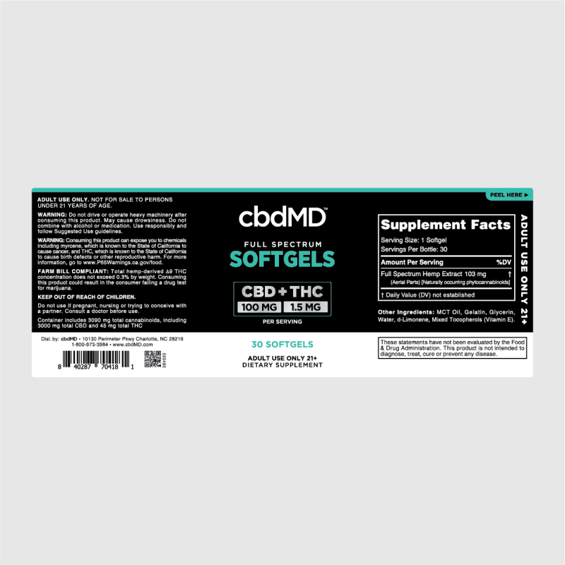 cbdMD Full Spectrum CBD Oil Softgels - 30 Ct. - 1500 mg is backordered and will ship in one week.