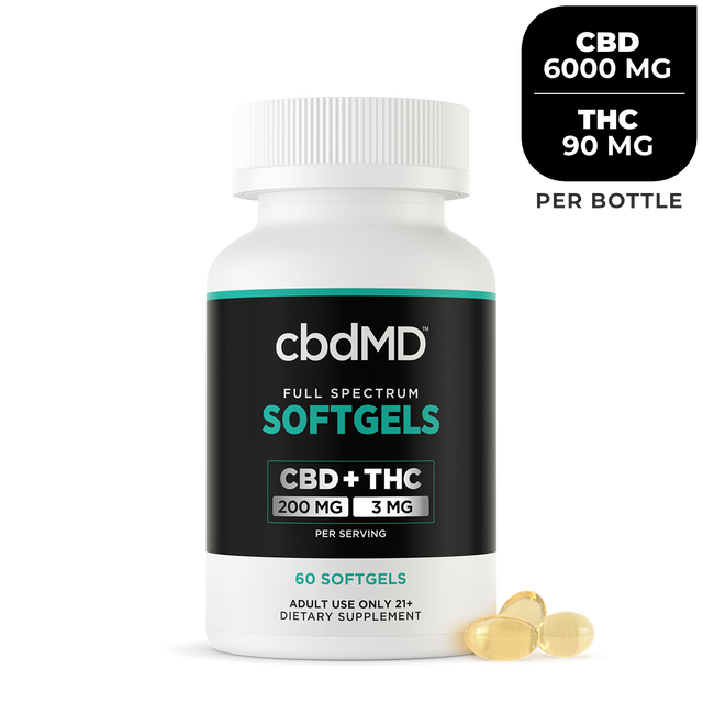 cbdMD Full Spectrum CBD Oil Softgels - 6000 mg (Per Bottle) | 60 Count