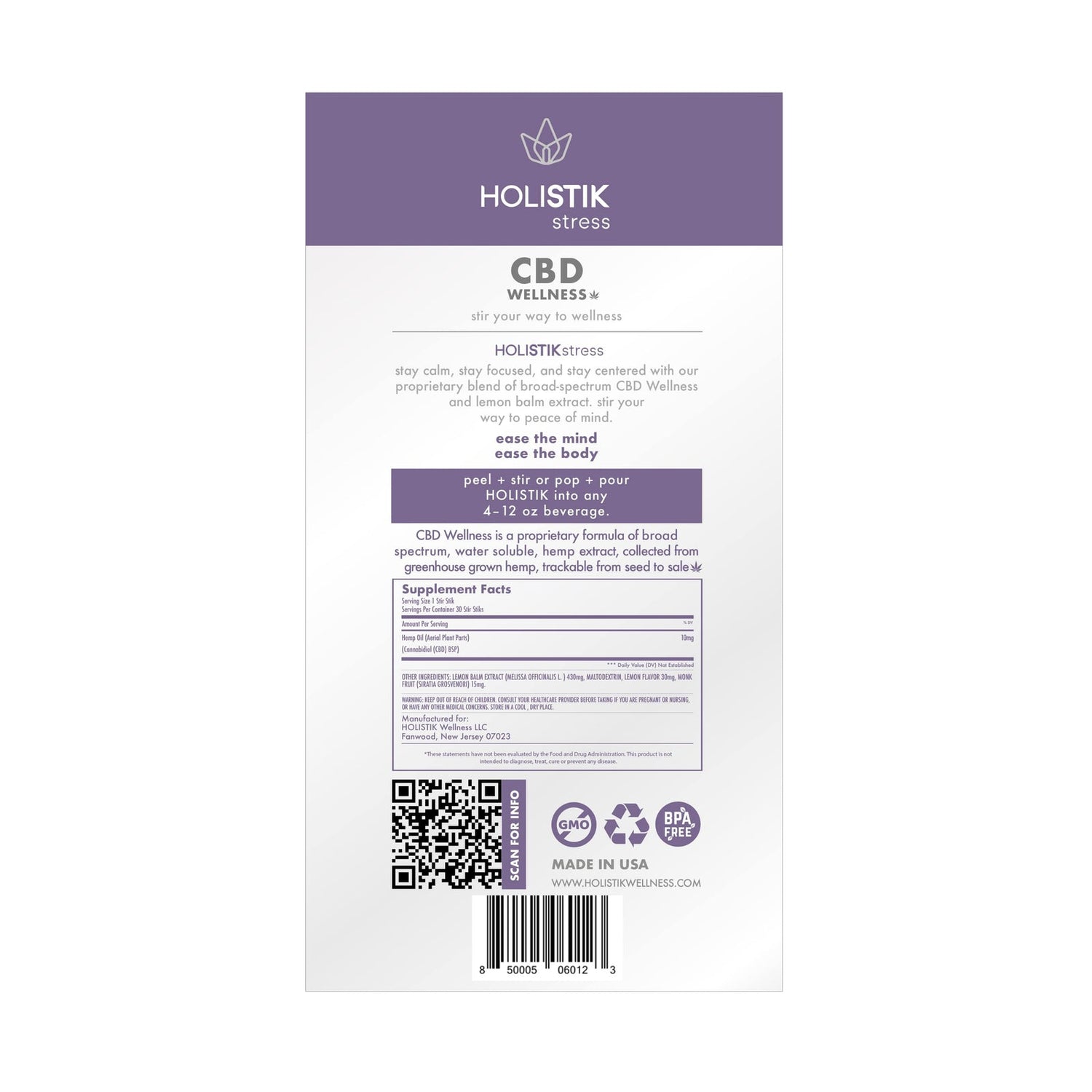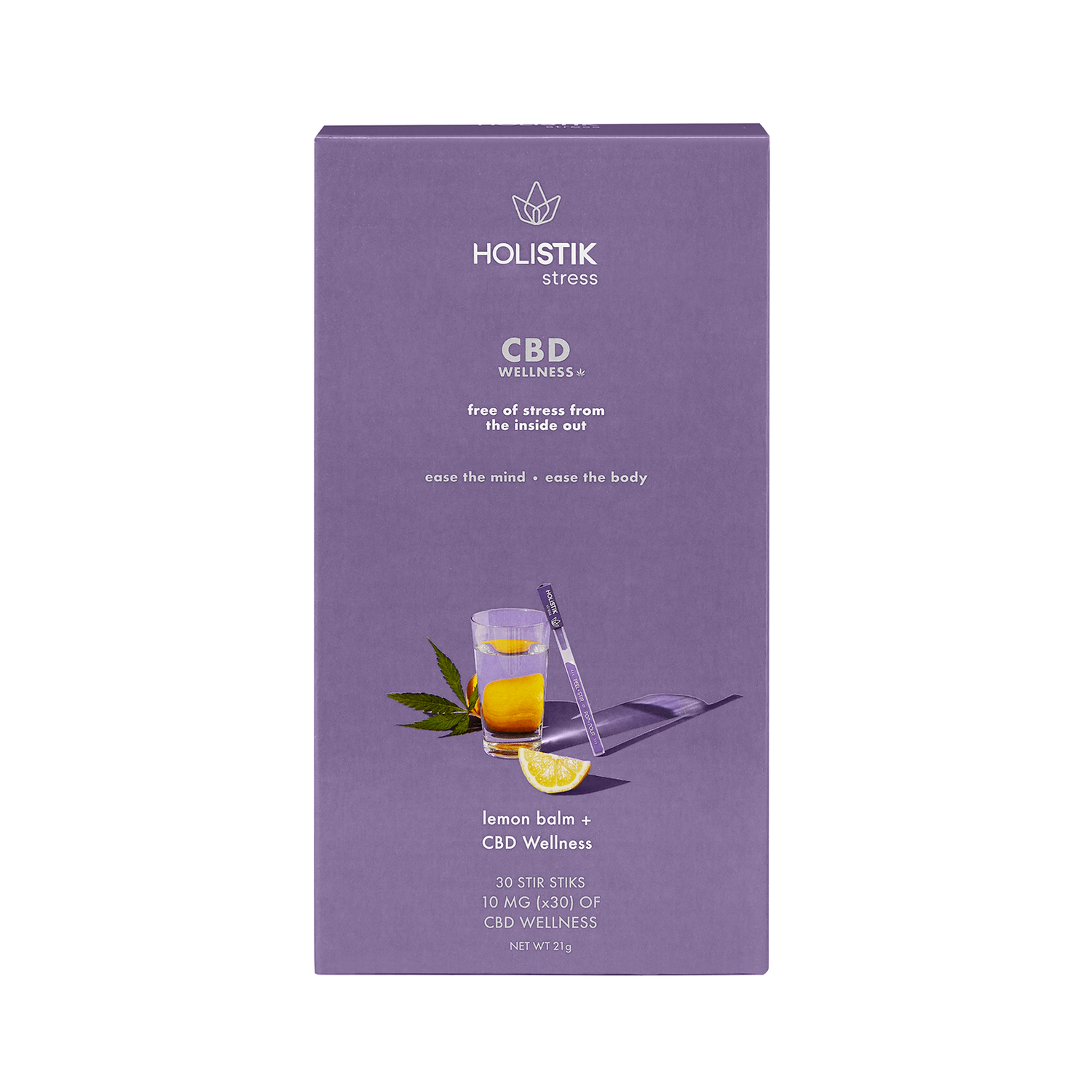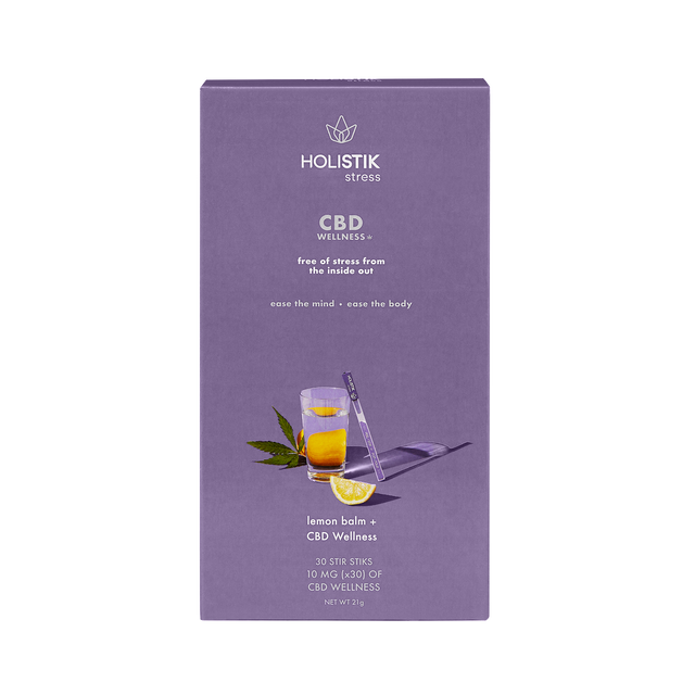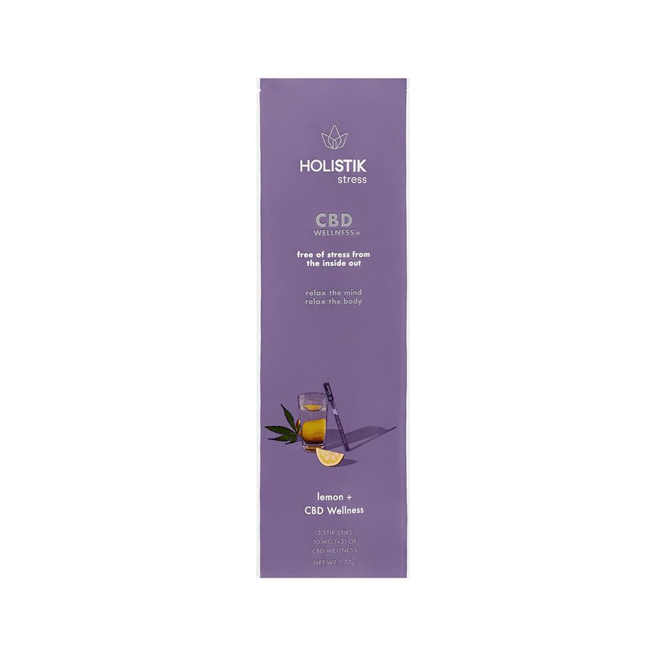 The HOLISTIK Stress STIK delivers a pre-portioned 10mg dose of fast acting, broad-spectrum, hemp-derived CBD blended with all-natural lemon balm extract known to support a calm mind and body in response to everyday stressors. The HOLISTIK Stress Stir STIK is designed to 'Pop & Pour' or 'Peel & Stir' your way to calm. The CBD drink mix makes it easy to manage daily stress by simply adding into a glass of water or your favorite hot or cold beverage.