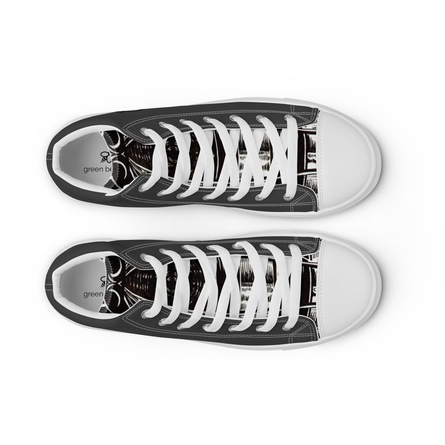 Men’s High Top Canvas Sneaker with Hive Bee Print in Black and White - 5 is backordered and will ship in one week.