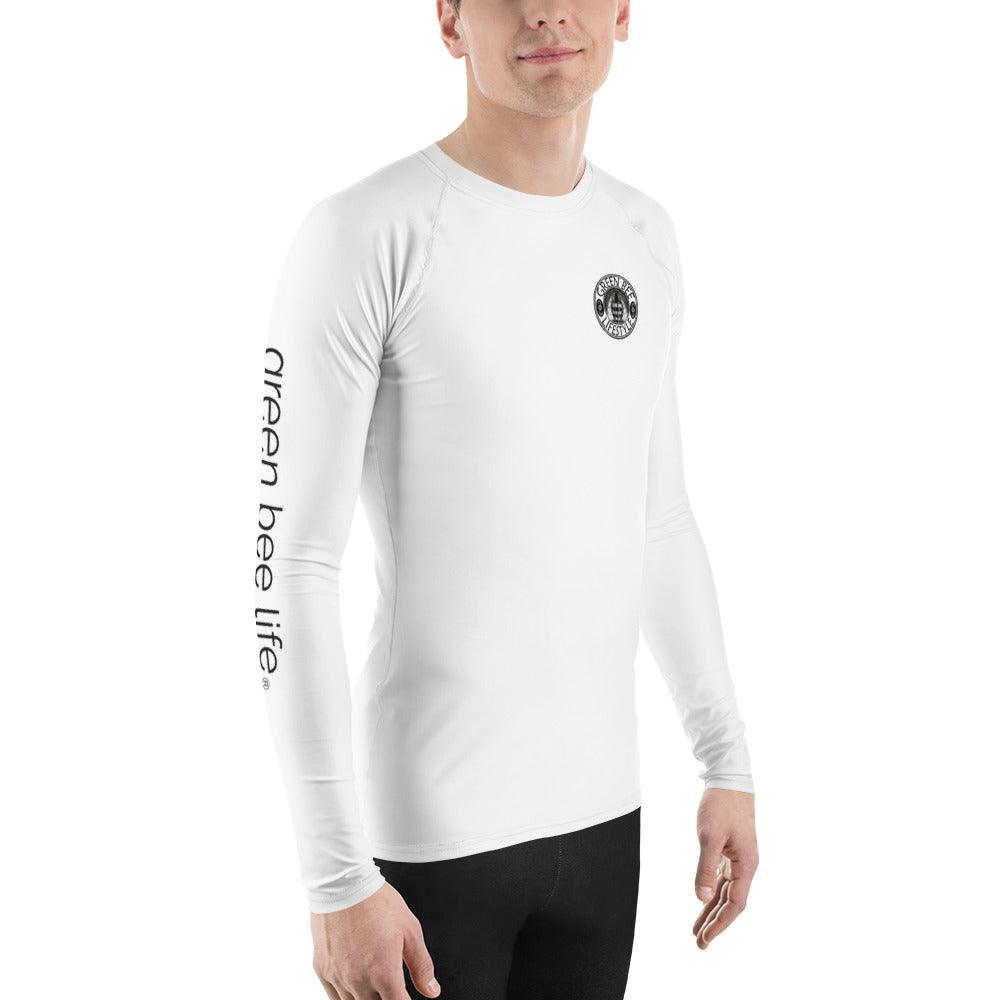 Green Bee Life Men's Sun Protection Shirt - Hive Bee Emblem - XS / Black Bee on White is backordered and will ship in one week.