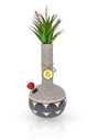 The Coyōté Vase features a textured sand coating and a smooth matte-painted base that makes it feel both earthy and refined. Her custom red bubble bowl (2.75”), 4" fixed downstem, succulent topper, and bold bottle-brush style faux flower poker create a cohesive, artistic display that blends seamlessly into your décor.